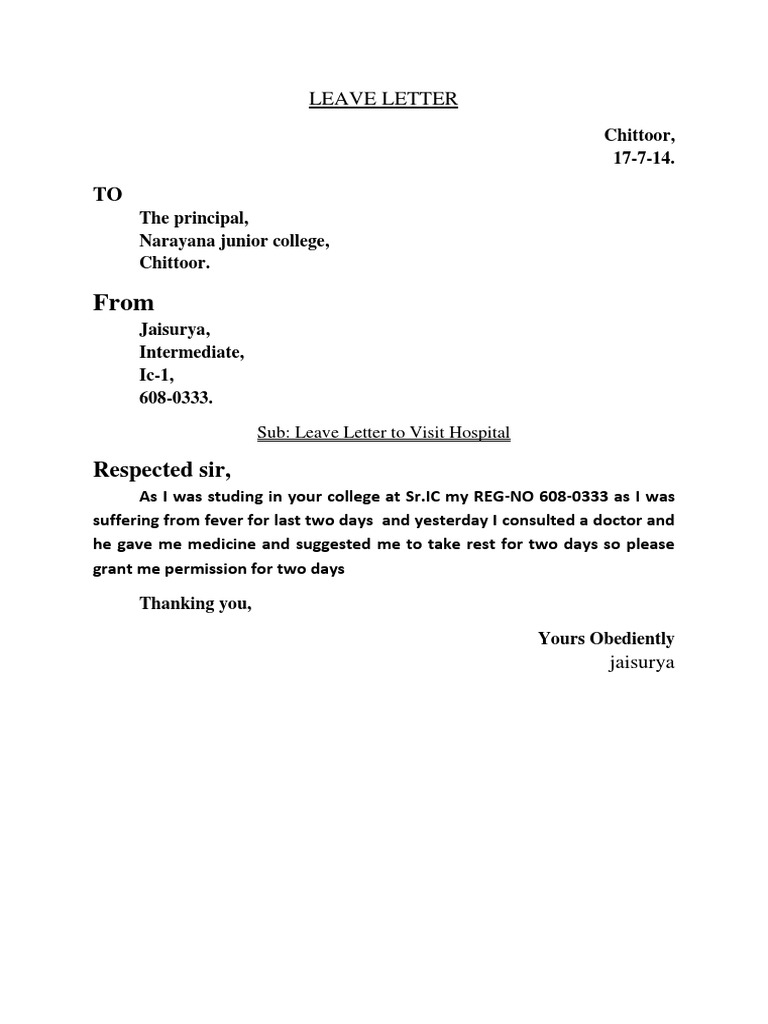 To, (whoever you are writing). College's staff uses it to analyze your passion. For example, the purpose for which they want the leave in the the leave letter needs to be formal, that is, it should contain professionalism. This site uses akismet to death spam. In the same way, the.